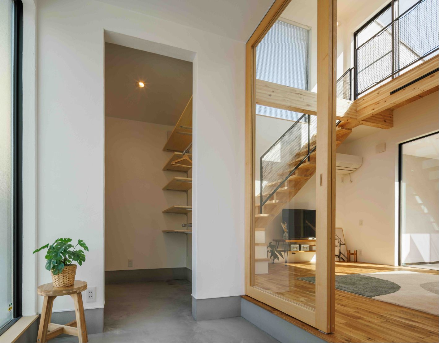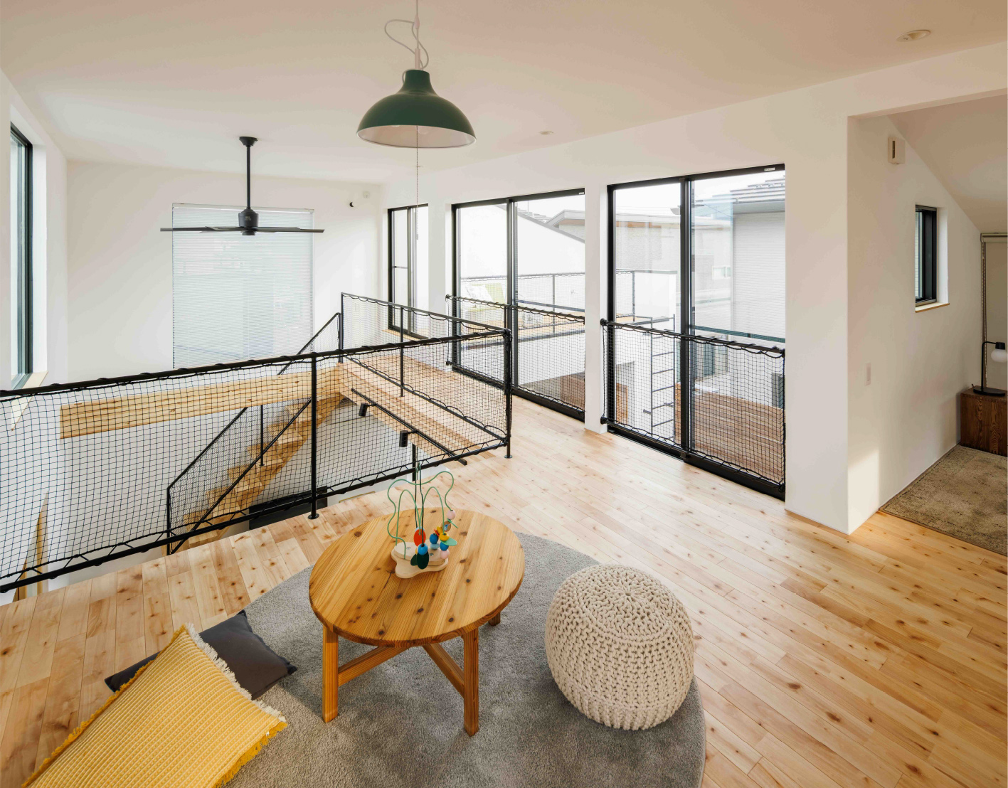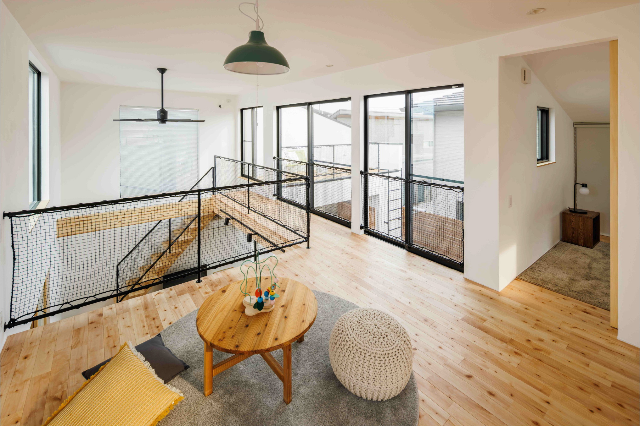 中庭をコの字に囲む間取りで、住宅街でも周囲の視線を気にすることなく、外との繋がりや開放感を感じられます。