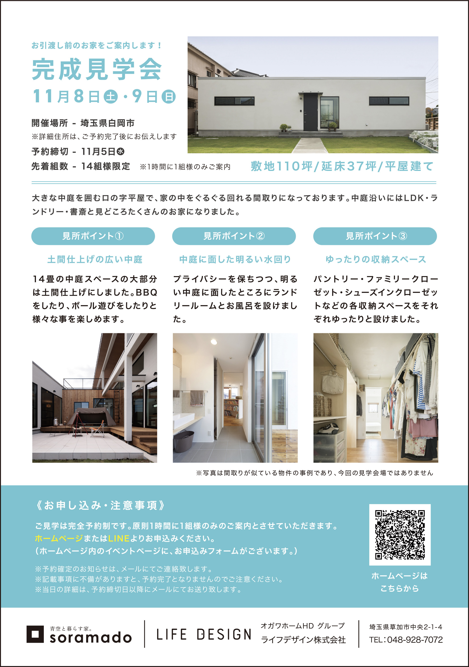 - 必要(下記フォームよりお申込み下さい) 締切:11/5[水] 先着14組様限定 ※1時間に1組様のみ